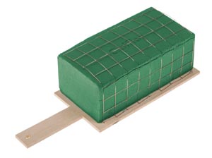 A legkedvezőbb és legkedveltebb oázistégla. Dróthálóval körbevonva áll egy stabil faalapzaton, praktikus nyél (11 cm) előrefúrt lyukkal van ellátva, mely megkönnyíti a rögzítést.