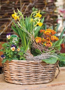 Szőlővessző kosár, natúr, belül fóliázott, ø 19 x 17 cm