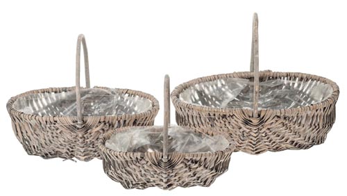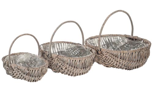 Füles kosár, szürke, 3 részes, 29 x 22 x 10 - 27 cm, 36 x 27 x 11 - 31 cm, 44 x 34 x 14 - 35 cm