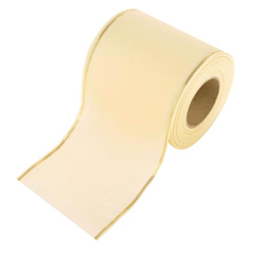 Morié szalag, keskeny arany szegéllyel, champagne 100 mm x 25 m