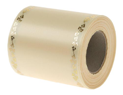 Szatén koszorúszalag, arany szegéllyel champagne 100 mm x 25 m