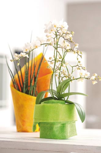 Szögletes, 2 részből álló - vlies és fólia (fólia egyik oldala fényes a másik matt), ideális kaspónak vagy virágmandzsettának.