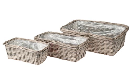 Vesszőkosár, szürke, 3 részes, 1 db, 35 x 18 x 13 cm, 40 x 22 x 15 cm, 50 x 13 x 17 cm