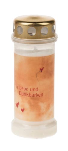 Arany tető, színes minta 'In Liebe und Dankbarkeit' felírattal. Égéstartam 70 óra.