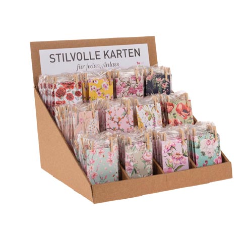 Filigrán virágmintákkal, különböző alkalmakra. Facsipesszel, celofánba csomagolva, 144 kártya.