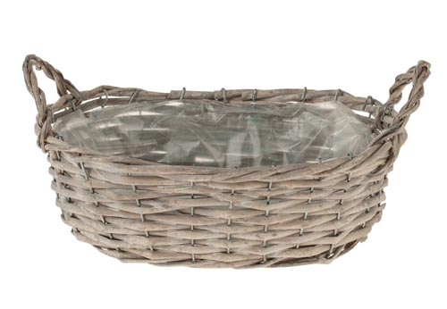 Vesszőkosár, szürke - fehér meszes, 26 x 17 x 9 cm