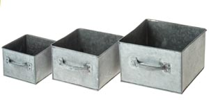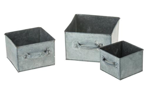 Bádog fiók, világos szürke, 3 részes, 3 db, 13 x 13 x 10 cm, 17 x 17 x 12 cm, 20 x 20 x 14 cm