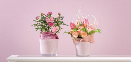Üveg kaspó, rózsaszín, ø 11, 5 x 11 cm