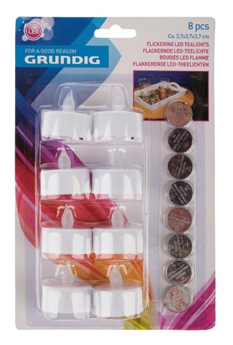 Pislákoló láng világítás, 1 db CR2032 gombelemet a csomag tartalmazza, mind a nyolc mécseshez.