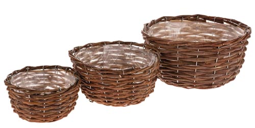 Vessző kosártál, natúr, 3 részes, ø 15 x 8 cm, ø 22 x 10 cm, ø 25 x 12 cm