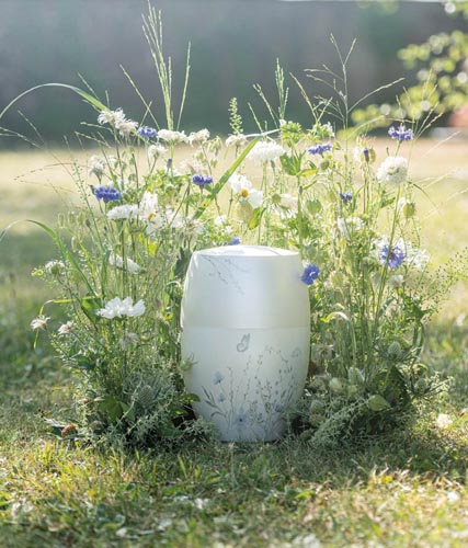 Fa alapon, fekete oázis. Ideális urna díszítéshez, az urna elejét nem takarja el a virág, mivel a koszorú nem teljes kör.
