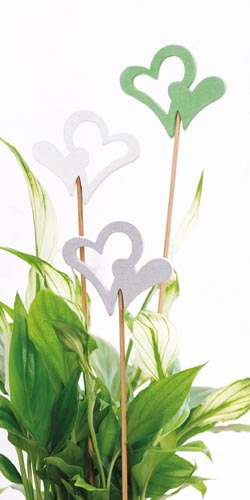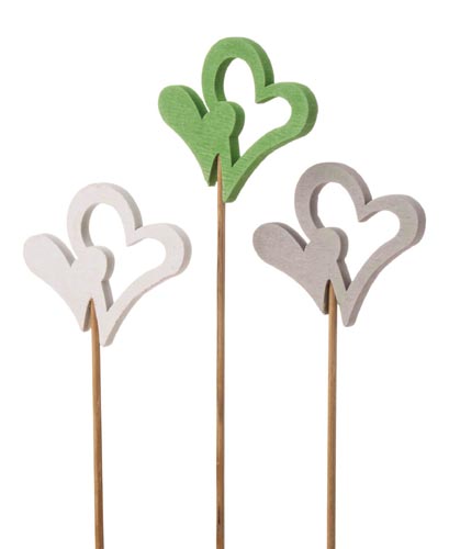 Fa szív pálcikán, zöld, szürke, fehér, ø 6 x 25 cm