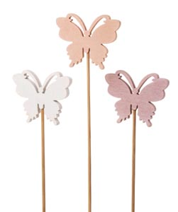 Fa pillangó pálcikán, fehér, apricot, rózsaszín