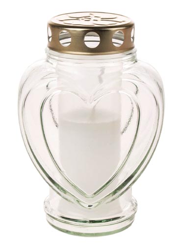 Sírlámpás - szív forma, átlátszó, 11, 5 x 10 x 18 cm