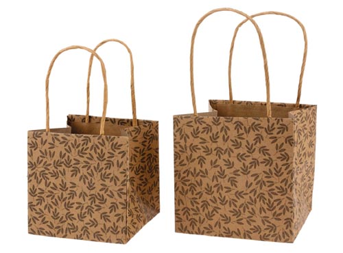 Fogantyúval, levél mintás, fóliával bélelt.