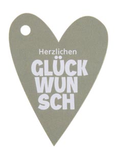 Ajándék kisérő szív - Herzlichen Glückwunsch, zöld, 52x70mm, 20 db