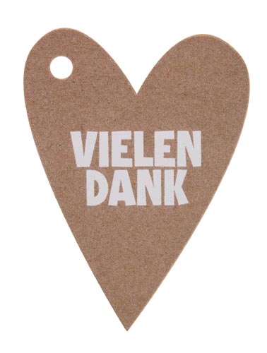 Ajándék kisérő szív - Vielen Dank!, natúr, 52x70mm, 20 db