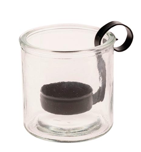 Üveg mécsestartó fém betéttel, átlátszó, fekete, ø 8 x 9 cm