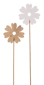 Fa virág pálcikán, fehér és natúr, ø 6 x 25 cm
