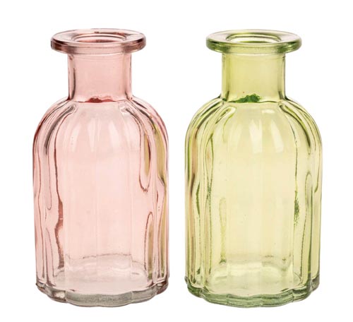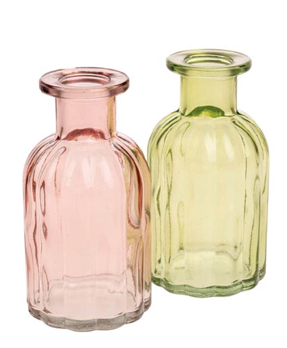 Üveg váza, zöld, rózsaszín, ø 5, 5 x 10 cm