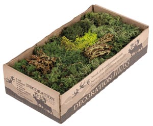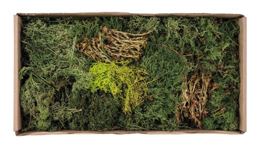 Különböző natúr és zöld tónusokban. Különböző mohát tartalmaz.