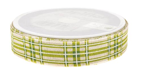 Textilszalag - kockás, zöld, 25 mm x 18 m