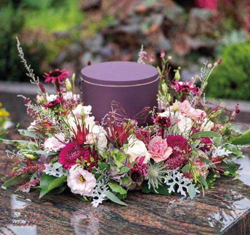Urna oáziskoszorú, műanyag alapon, fektethető, ø 30x4cm