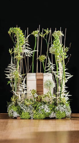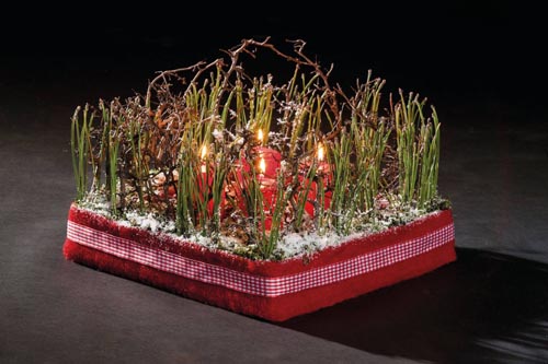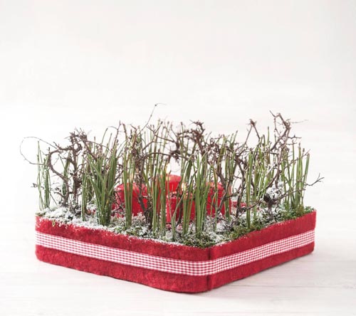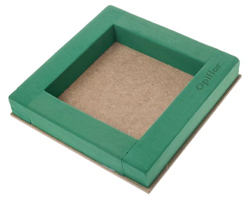 Stabil végighúzódó fa alalappal, belül 24 x 24 cm, oázis 5 cm magas.