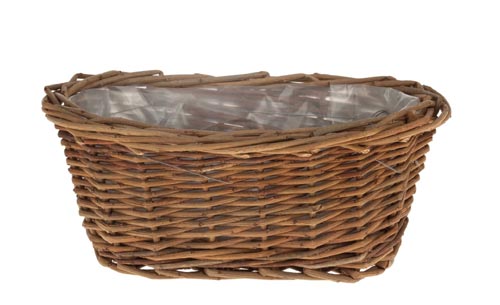 Vesszőkosár, szürke, ovális, belül fóliázott, 25 x 14 x 8, 5 cm