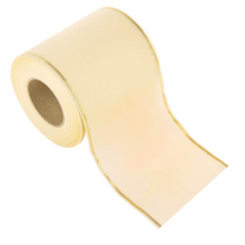 Morié szalag, keskeny arany szegéllyel, champagne 100 mm x 25 m