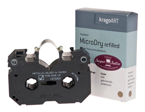 Szatén szalagok nyomtatásához. A következŐ nyomtatógépekhez alkalmas: Thermo-Transferdrucker Oki: DP 5000S, Citizen: Printiva 1700-700 és Alps: MD 1000 + MD 2010.