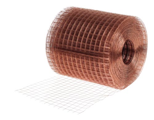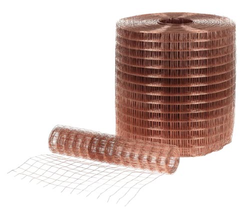 Rézbevonatos vasháló tekercs, hálószem távolság kb. 2,5 x 2,5 cm.