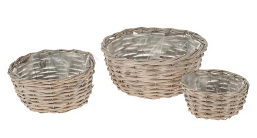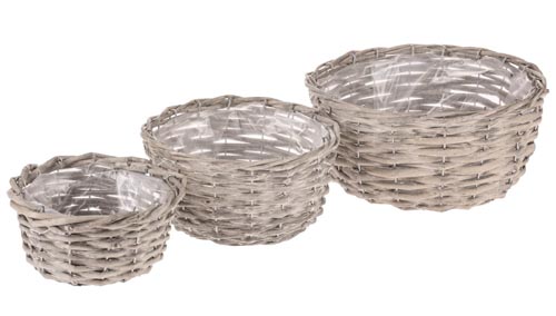 Vesszőkosár tál, szürke - fehér meszes, 3 részes, 3 db, Ø 15 x 8 cm, Ø 22 x 10 cm, Ø 25 x 12 cm