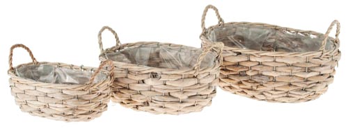Vizi hyazinthen kosár, ovális, natúr, 3 részes, 1 db, 25 x 18 x 10, 30 x 22 x 12, 36 x 27 x 14 cm