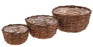 Vessző kosártál, natúr, 3 részes, ø 15 x 8 cm, ø 22 x 10 cm, ø 25 x 12 cm