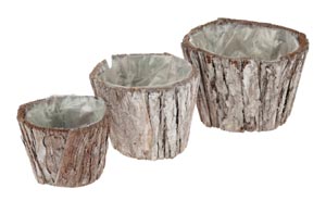 Fakéreg kaspó, meszes fehér, 3 része, ø 10 x 9 cm, ø 13, 5 x 11 cm, ø 17 x 12 cm