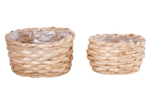 Fonott ovális nádfű kosár, natúr, 2 részes, 22, 5 x 16, 5 x 14 cm, 27, 5 x 22, 5 x 15, 5 cm