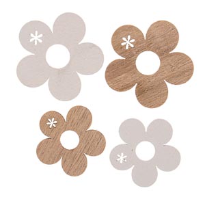 Fa virág, fehér és natúr, 24 db, 2, 8 x 0, 8 x 2, 7 cm