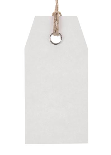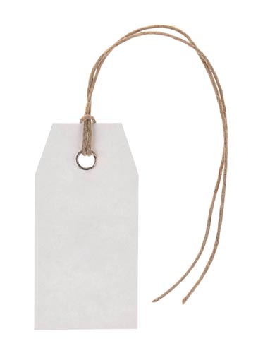 Kartonból, 13 cm hosszú akasztón, szegecselt fűzőlyukkal..