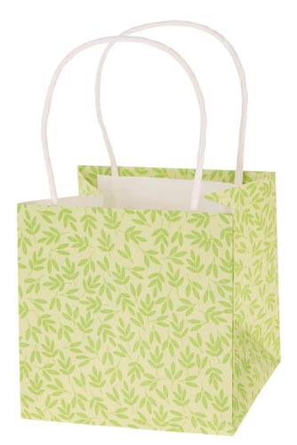 Fogantyúval, levél mintás, fóliával bélelt.