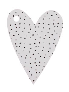 Ajándékcímke szívek, fehér, fekete pöttyös, 52x70mm, 20 db