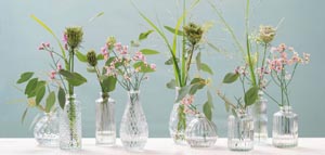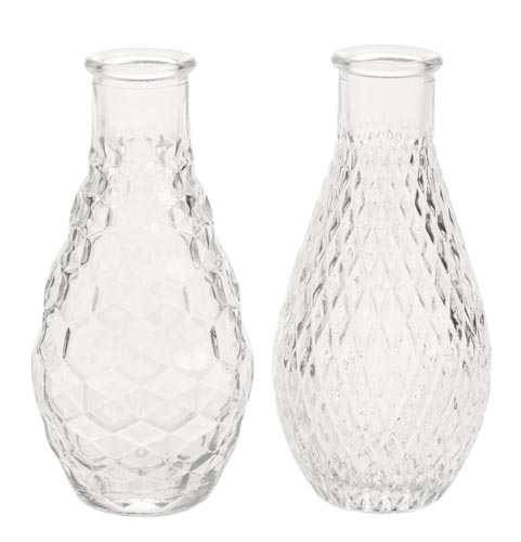 Öblös hasú üvegpalack, gyémánt és méhsejt mintával. 2 féle. Nyitás: ø 2,5 cm.