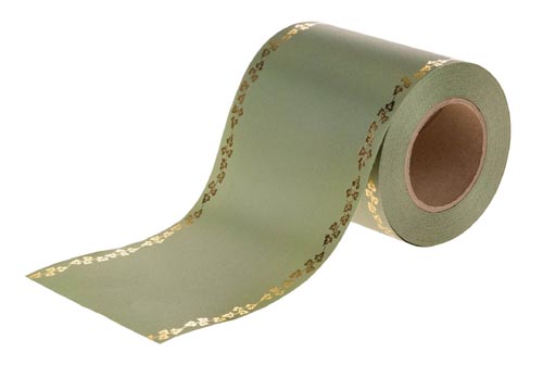 Kiváló minőségű szatén koszorú szalag elegáns nyomott arany szegéllyel (borostyán motívum) különböző szélességekben. Hossza: 25 m.